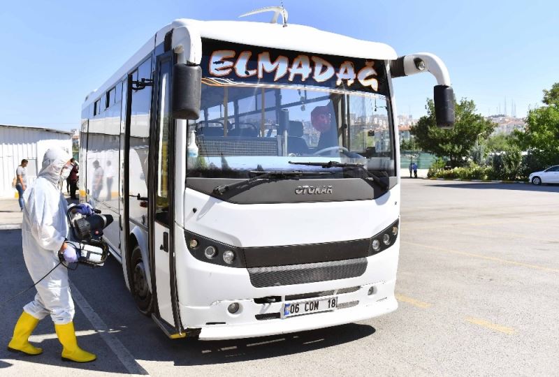 Ankara Büyükşehir Belediyesi, korona virüs salgınıyla mücadele kapsamında tüm birimleriyle teyakkuza geçti. Başkan Yavaş’ın Başkent’te vaka sayısındaki artış üzerine yayımladığı genelge doğrultusunda harekete geçen Sağlık İşleri Daire Başkanlığı, ilçelere servis yapan Özel Toplu Taşıma Araçlarında (ÖTA) dezenfeksiyon çalışması başlattı.