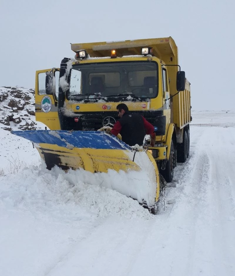 Kar yağışı ve tipi nedeniyle ekipler, ulaşımda zorlukları giderebilmek amacıyla hafta sonu gece, gündüz demeden karla mücadele ederken, ilçelerde ulaşıma açılan yollarda kar temizleme çalışmaları sürüyor.