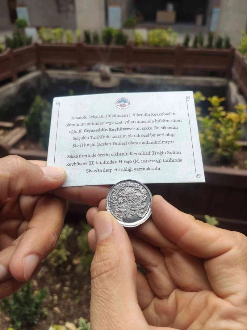 Kayseri’nin tarihine ve turizm değerlerine yönelik farklı bir uygulamalar ile gündeme gelen ve kentin değerlerini gün yüzüne çıkararak katkı sağlayan Büyükşehir Belediyesi, güzel bir çalışmayı hayata geçirerek beğeni topladı. Anadolu Selçuklu Devleti’ne ait, tasarımları ve kompozisyonlarıyla ön plana çıkan Anadolu Selçuklu sultanlarından II. Gıyaseddin Keyhüsrev ve IV. Kılıçarslan’ın olan sikkeler, yeniden darp edilmesi için kalıbı yapılmak suretiyle, kurşun malzemeden geleneksel darp yöntemleriyle imal edilerek, hatıra para formatında ziyaretçilerin ilgisine sunuldu.