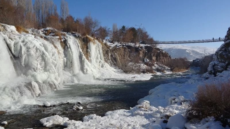 Buzdan gelinliğini giyen Muradiye Şelalesi büyülüyor