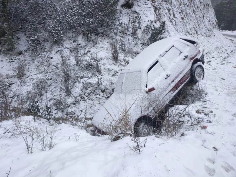 Buldan’da karın etkisiyle beraber buzlanan yolda sürücüsünün direksiyon hakimiyetini kaybetmesi üzerine otomobil şarampole uçtu. Kazada yaralanan olmazken araçta maddi hasar meydana geldi.
