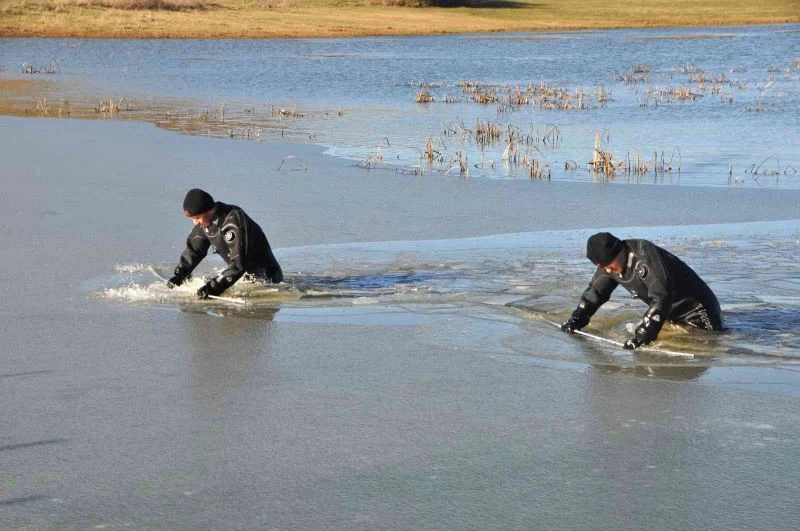 Tokat’ta 14 gündür kayıp olan 5 çocuk annesini, SAK timi buzları kırarak Karacagöl’de de aradı.