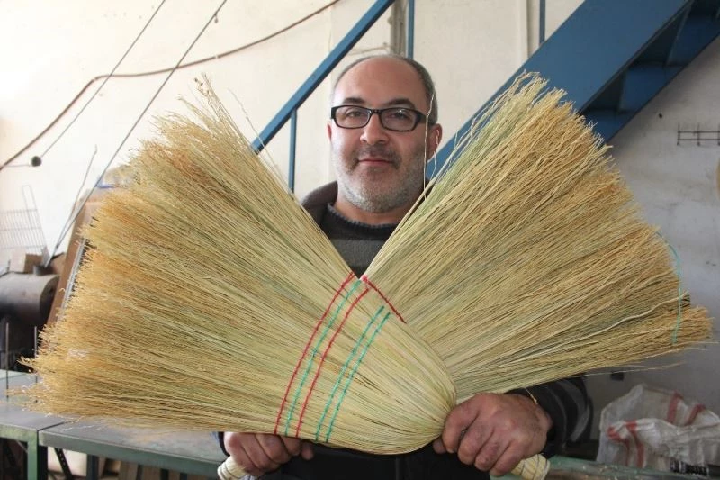 Süpürgenin üretim aşamalarını anlatan Muharrem Çoban, “İmalat kısmında ham madde geldikten sonra ıslatılır sonra ambara dikilir, naylonla örtülür, içine akşam kükürt yakılır. 4-5 saat o şekilde durur. Sabah naylonu açarsın, bu bize yumuşak olması ve beyazlaması için yarar. Sonra imalat kısmında ürün seçilir. Seçilme işi bittikten sonra zahiresini keserler. İkinci kısmı taslak, üçüncü kısmı tepe son kısmı da dikiş kısmıdır. Dikişten sonra temizlenir, ipleri ve süpürgenin ucu kesilerek, hazır hale getirilir” ifadelerini kullandı.