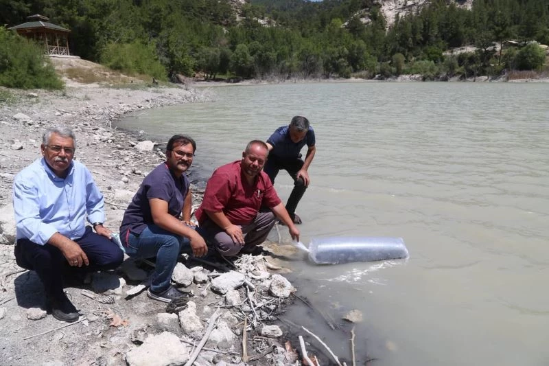 Denizli’nin Çameli ilçesinde bulunan saklı cennet Kolak Gölüne, Çameli Tarım İlçe Gıda Tarım ve Hayvancılık Müdürlüğü tarafından 10 bin yavru pullu sazan balığı gölede bırakıldı.