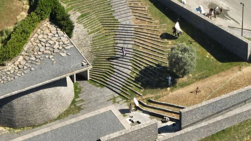 Klasik cami mimarisinden farklı yapıya sahip Büyükçekmece’deki Sancaklar Camii bahçesinde bir giyim markasının ilkbahar yaz tasarımları için mankenler ile moda çekimi yapıldı. O anlar kameraya yansıdı.