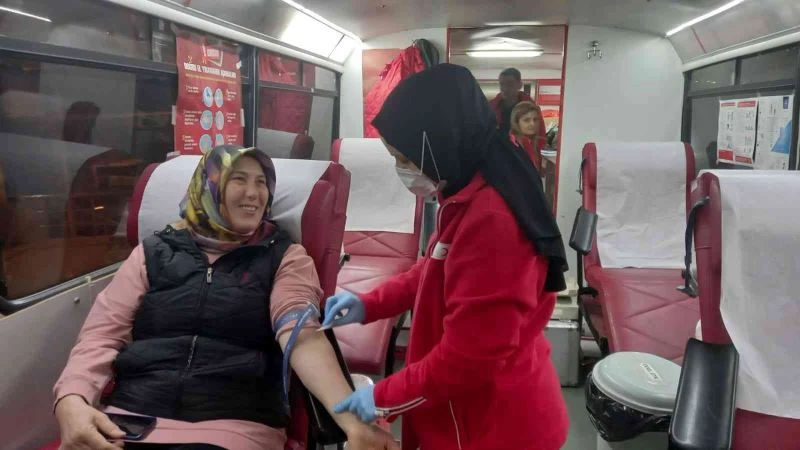 Zonguldak’ın Ereğli ilçesinde Hatip Camii’nde teravih namazı kılan cemaat, namaz sonrasında kan bağışında bulundu.