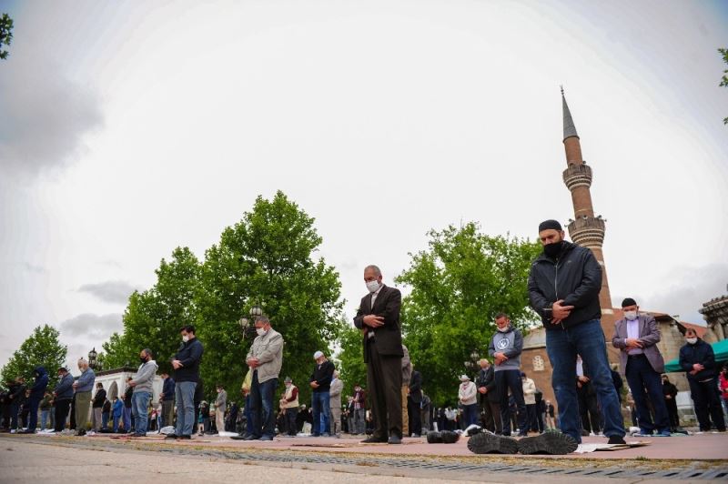 Ankara’da 3 bin 11 camiden avlusu müsait olan bin 687 tanesinde cuma namazı kılındı. Ankara’nın sembolik mekanlarından Hacı Bayram-ı Veli Camii de cuma namazında cemaatle buluştu. Evlerinden getirdikleri seccadelerle namaz kılan vatandaşlar, sosyal mesafe ve maske kuralına dikkat etti. Korona virüs tedbirleri çerçevesinde alınan önlemler doğrultusunda Hacı Bayram-ı Veli Camii’nde kılınan cuma namazına Türkiye Büyük Millet Meclisi Başkanı Prof. Dr. Mustafa Şentop ve çok sayıda vatandaş katıldı. Cami girişinde namaz kılmaya gelenlerin ateşleri de ölçüldü.