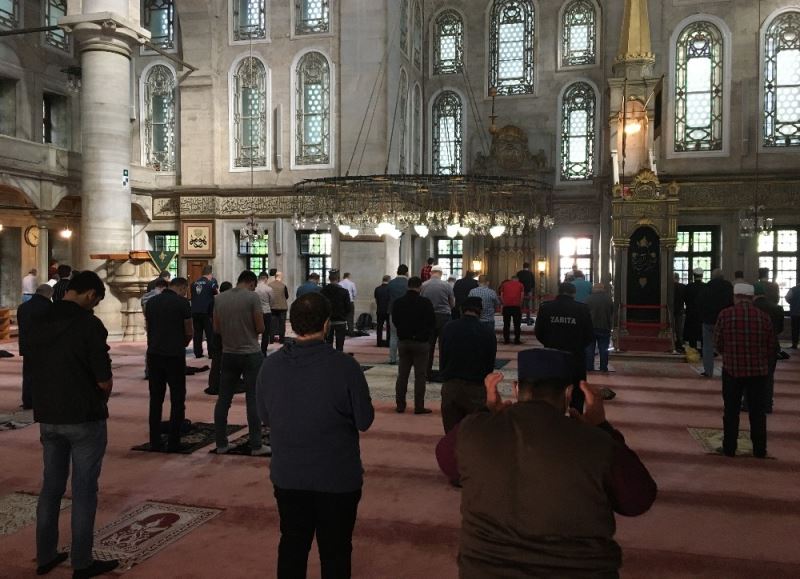 Yeni tip korona virüs tedbirleri kapsamında ibadete kapalı olan camiler bugün kılınan cuma namazıyla birlikte tekrar ibadete açıldı. Eyüpsultan Camii’nde ikindi namazı cemaatle birlikte sosyal mesafe kuralına uyularak kılındı.