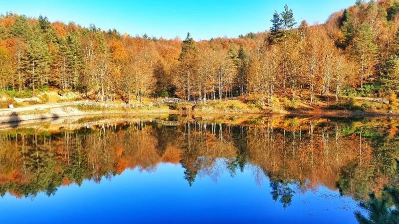 DÜZCE(İHA) – Düzce’nin Kaynaşlı ilçesinde yer alan Çamlıpınar Göleti’nin manzarası havadan görüntülendi. Göletin yansıyan görüntüsü, güzel bir tablo oluşturdu.