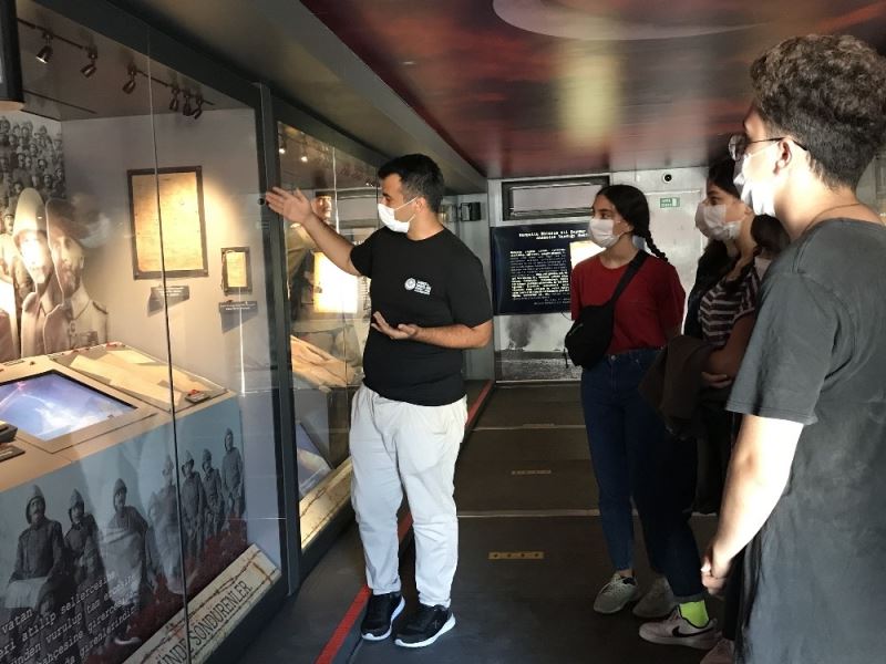Çanakkale Savaşları Mobil Müzesi’ne grup halinde gelen kişilere ise mobil müze sorumluları müze içerisinde yer alanlara anlatması ise dikkatlerden kaçmadı.