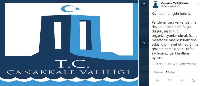 Çanakkale Valiliği, 1 Temmuz’dan itibaren toplu organizasyon yasaklarının kaldırılmasının ardından korona virüsü kurallarına uyulmadığına dair uyarıda bulundu.