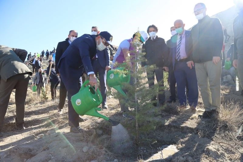 Törende konuşan Vali Abdullah Ayaz, iklim zirvesinin yakın zamanda yapıldığını hatırlatarak, “Bu zirvede bulunan ülkemiz ve diğer ülkeler geleceğe dair iklim hedeflerini ortaya koydular. Dünyamız çevre felaketleri açısından bir uçurumun kenarında. Uçurumun kenarında olanlar bir sonraki adımlarını çok dikkatli atmaları gerekir. Onun için ülkemizde son yıllarda hem orman varlığının arttırılması hem yenilenebilir enerji kaynaklarının yükseltilebilmesi noktasında büyük bir dönüşüme imza atmaya devam ediyor. Bugün de bu adımlardan birisi olarak burada 100 hektarlık alanda 70 bin fidanın toprakla buluşmasını hep beraber sağlayacağız. İlimizin yaklaşık yüzde 25’i ormanla kaplı. Son 20 yılda arkadaşlarımızın da gayretiyle ilimiz genelinde 58 milyondan fazla fidan toprakla buluşmuş oldu. İnşallah önümüzdeki dönemde de hem ilimizde hem ülkemizde orman varlığının arttırıldığına, çevresel büyük yatırımların yapıldığına ve büyük bir dönüşümün gerçekleştiğine hep birlikte şahitlik etmeye devam edeceğiz” dedi.