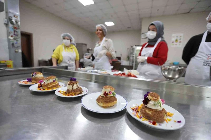 Ünlü pasta şefi Beyza Çevik ve Ziraat Mühendisi Merve Gülistan Aydın, Bağcılar Belediyesi Feyzullah Kıyıklık Engelliler Sarayı’nda eğitim gören Aşçılık Sınıfı öğrencileriyle bir araya geldi. Kursiyerlerle derse giren Çevik, onlara canlı çiçeklerle pasta yapmayı öğretti. Mutfak tezgahının başına toplanan öğrenciler, Çevik’in anlatımları doğrultusunda kursiyerler, profiterol hamurundan yapılan kurabiyelerin içine hiçbir katkı maddesi bulunmayan krema, çikolata koydular. Çilek parçacıkları yerleştirilen pasta, menekşe ve kasımpatı gibi yenilebilir çiçeklerle süslendi. Özverili çalışmaların neticesinde ortaya rengarenk görünümlü pastalar çıktı.