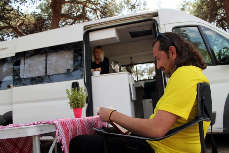 ANTALYA (AA) - BEKIR BEKTAS - Antalya'da kamp hayati ve doga sevgileri agir basinca bir yil önce tüm yasamlarini içine sigdirdiklari "Tosbavan" adini verdikleri karavanla hayallerini gerçege dönüstüren çift, dogayla bas basa bir yasam sürüyor.