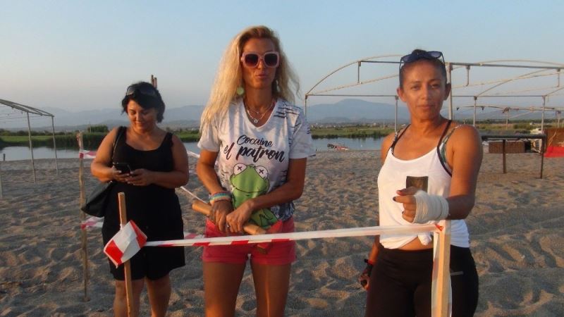 Caretta kaplumbağaları konusundaki duyarlılığı nedeniyle Kaplumbağa kadın olarak adlandırılan Seher Ulaş ve Manavgatlı çevreci kadınların misafiri olarak Boğaz mevki’ine gelen ünlü sanatçı Tuğba Özay, Boğaz mevki’indeki 212. Caretta yuvasının çıtalarını çaktı.