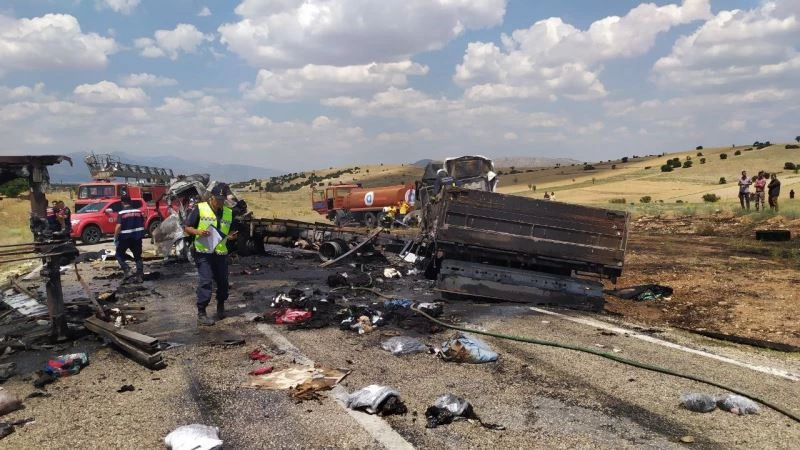 Çarpıştıktan sonra alev alan tır ve kamyon üç kişiye mezar oldu
