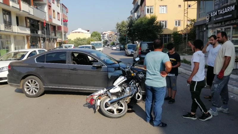 Çarptığı otomobilin üzerinden takla atan kasksız motosikletli yaralandı