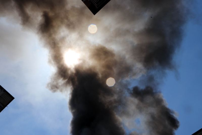 Kayseri’nin Kocasinan ilçesinde bulunan bir apartmanın çatısında devam eden onarma çalışmasında çıkan alev, tüm çatıyı sardı. Etrafı yoğun duman kaplarken, bina sakinleri büyük panik yaşadı.