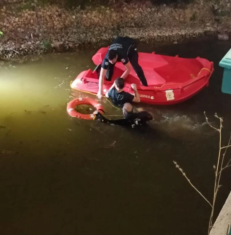 Çaya düşen telefonunu almak isterken akıntıya kapılan şahıs kurtarıldı