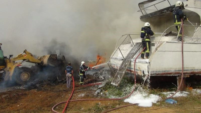 Antalya’nın Manavgat ilçesinde tekne imalat ve tamiratının yapıldığı çekek yerinde çıkan yangın korku dolu anların yaşanmasına neden oldu. Yanan çalılık alan kepçe ile toprak atılarak söndürülürken, tekne ise Antalya Büyükşehir Belediyesi itfaiye ekiplerince uzun bir çabanın ardından söndürüldü.