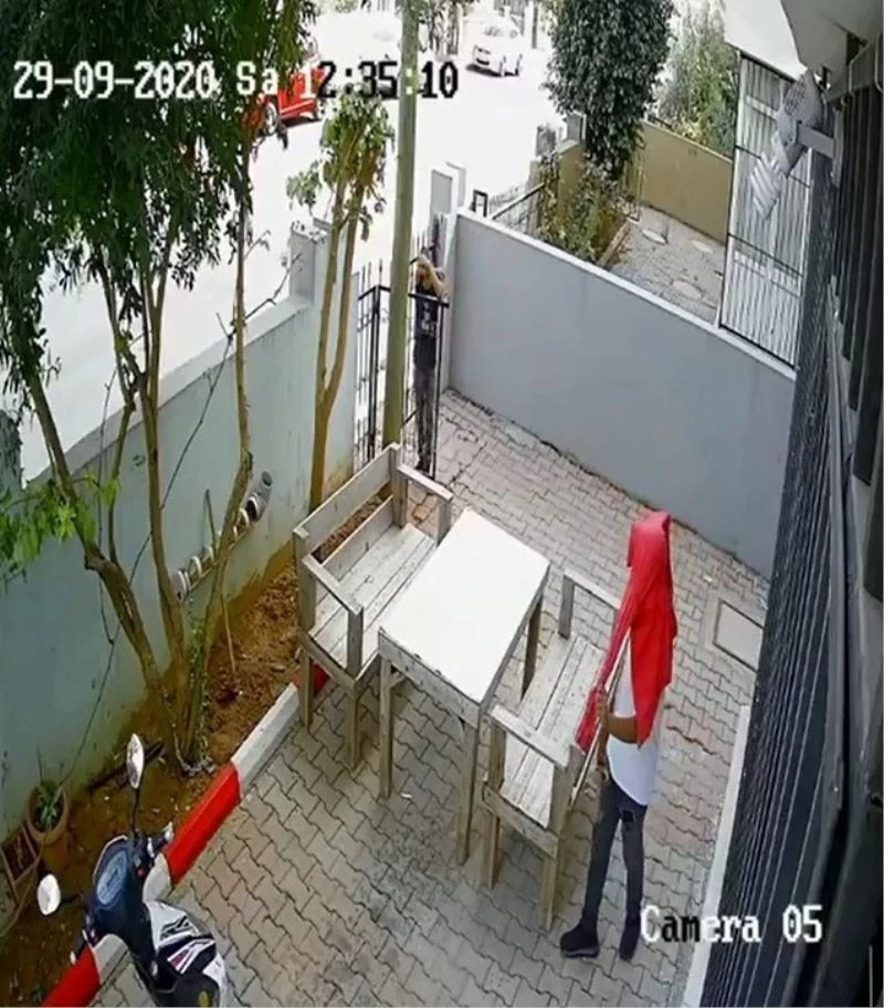 Antalya’da bir apartmanın bahçesindeki elektrikli bisikleti çalan 2 şüpheli güvenlik kamerasına yansıdı. Yaşları küçük şüphelilerden biri kamerayı fark edince ceketiyle başını kapatırken, diğeri de elleriyle yüzünü kapatarak bahçe kapısında bekledi.
