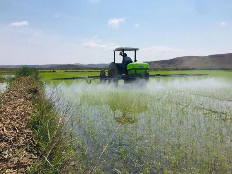 Çeltik tarlalarında yabani otlarla mücadele başladı