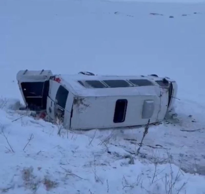 Konya’da katıldıkları yakınlarının cenazesinden dönenleri taşıyan minibüs, Kars’ın Sarıkamış ilçesinde şarampole yuvarlandı. Kazada 2’si ağır 18 kişi yaralandı.