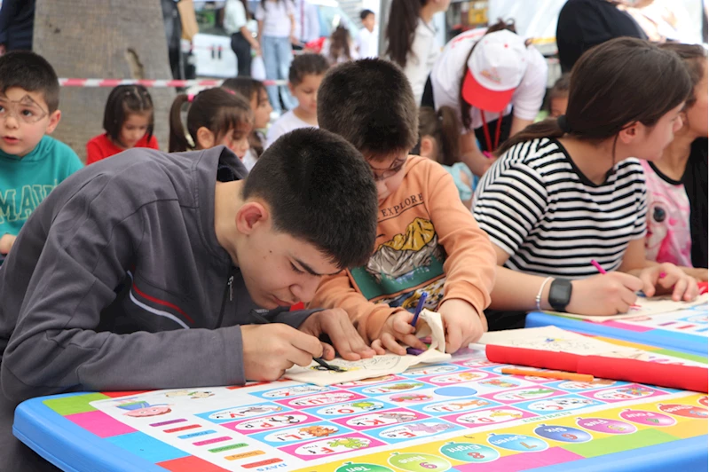 Atölye çalışmalarına katılan çocuklar, yüz ve çanta boyama etkinliklerinde yeteneklerini sergiledi, sahneye çıkarak şiir okudu.