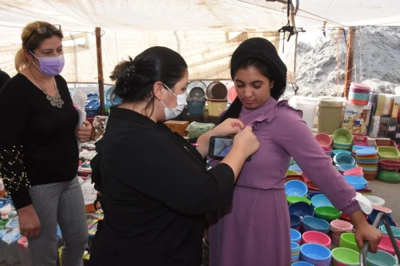 Ceyhan Belediyesince meme kanserine dikkat çekmek için kadınlara pembe kurdele dağıtıldı.