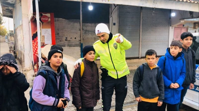 Şanlıurfa’nın Ceylanpınar ilçesinde trafik polisleri, akan trafiği durdurarak çocukların geçmesine yardımcı oldu. Ekipler, sürücüleri de uyararak ‘öncelik yayanın’ uyarısında bulundu.