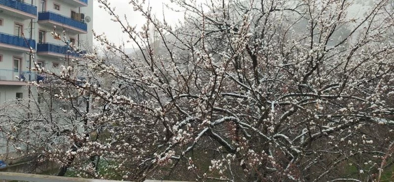 Sivas’ın Gürün ilçesinde etkili olan kar yağışı çiçek açan kayısı ağaçlarını beyaza bürüdü. İlçede bir çok vatandaşın geçim kaynağı olan kayısı ağaçlarının beyaza bürünmesi, ürün kaybının yaşanabilecek olması nedeniyle çiftçileri tedirgin etti.
