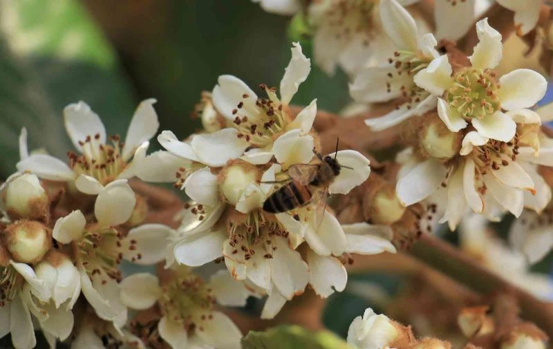 Türkiye’de yeni dünya (Malta eriği) meyvesinin en fazla üretildiği iller arasında yer alan Mersin’de ağaçların çiçek açmasıyla görsel bir güzellik ortaya çıkarken, arılar için de nektar ve polen toplama alanı oldu.