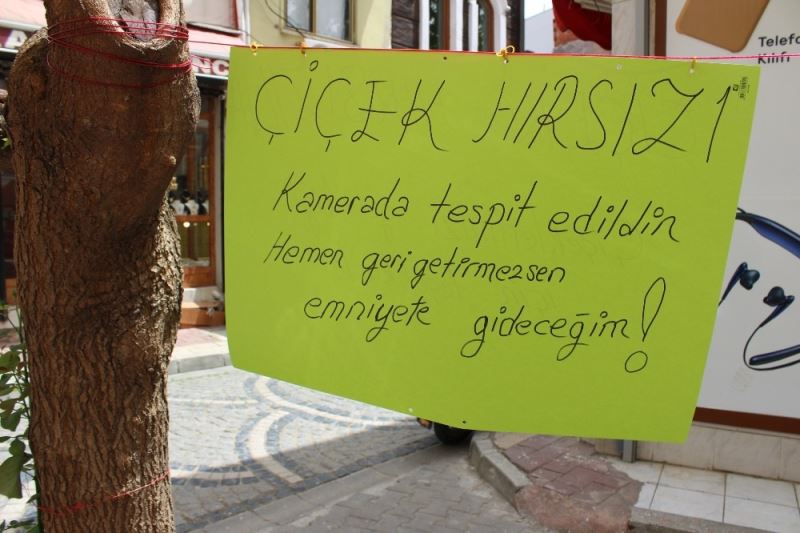 Atatürk Caddesi Lonca Sokak üzerinde bir esnafın çiçek hırsızıyla diyaloğu ilgi çekti. Esnaf, işyerinin önünde bulunan çiçekleri alan hırsıza hitaben hazırladığı afişe, "Çiçek hırsızı, kamerada tespit edildin. Hemen geri getirmezsen emniyete gideceğim" mesajı yazdı. Mesajı okuduğu anlaşılan hırsın gece çaldığı çiçekleri geri getirmiş olduğunu gören işyeri sahibi, ikinci mesajla hırsıza "Çiçek hırsızına çiçeklerimizi getirdiği için teşekkürler" mesajı yazdı.