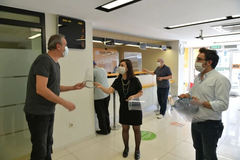 Bu süreçte görevlerini aksatmadan sürdüren banka çalışanları da unutulmadı. Başkan Utku Gümrükçü, meslekleri gereği müşterilerle sürekli temas halinde olan banka çalışanlarının sağlığını korumak amacıyla tüm kamu ve özel banka çalışanlarına yüz siperliği hediye etti. Başkan Gümrükçü, ihtiyaç duyulması halinde gerekli desteğin sağlanmaya devam edeceğini bildirdi.