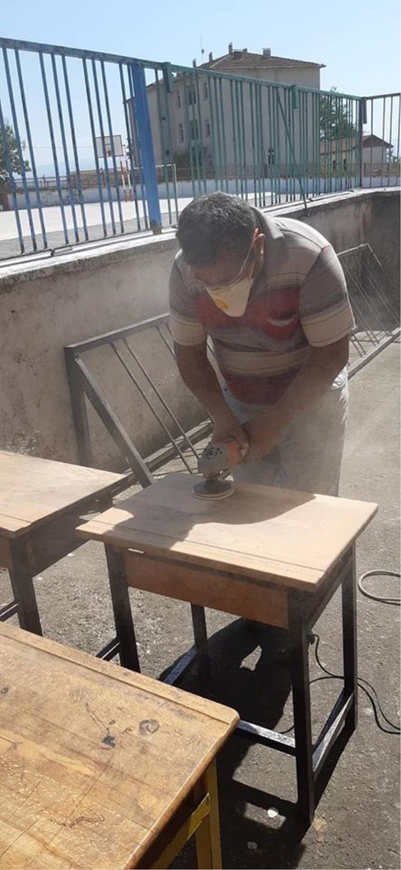 DÜZCE (İHA) – Çilimli Yenivakıf İlk ve Ortaokulu 21 Eylül’de başlayacak yüz yüze eğitim öncesinde sınıflarda bulunan sıralar ile tek tek ilgilenerek, dezenfekte çalışmalarını hızlandırdı.