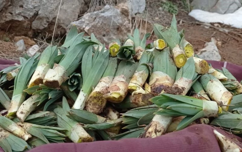 Kahramanmaraş’ta ilkbahar mevsiminde dağlarda yetişen ve yöresel yemeklerde kullanılan çiriş otu, sofraları süslemeye başladı.