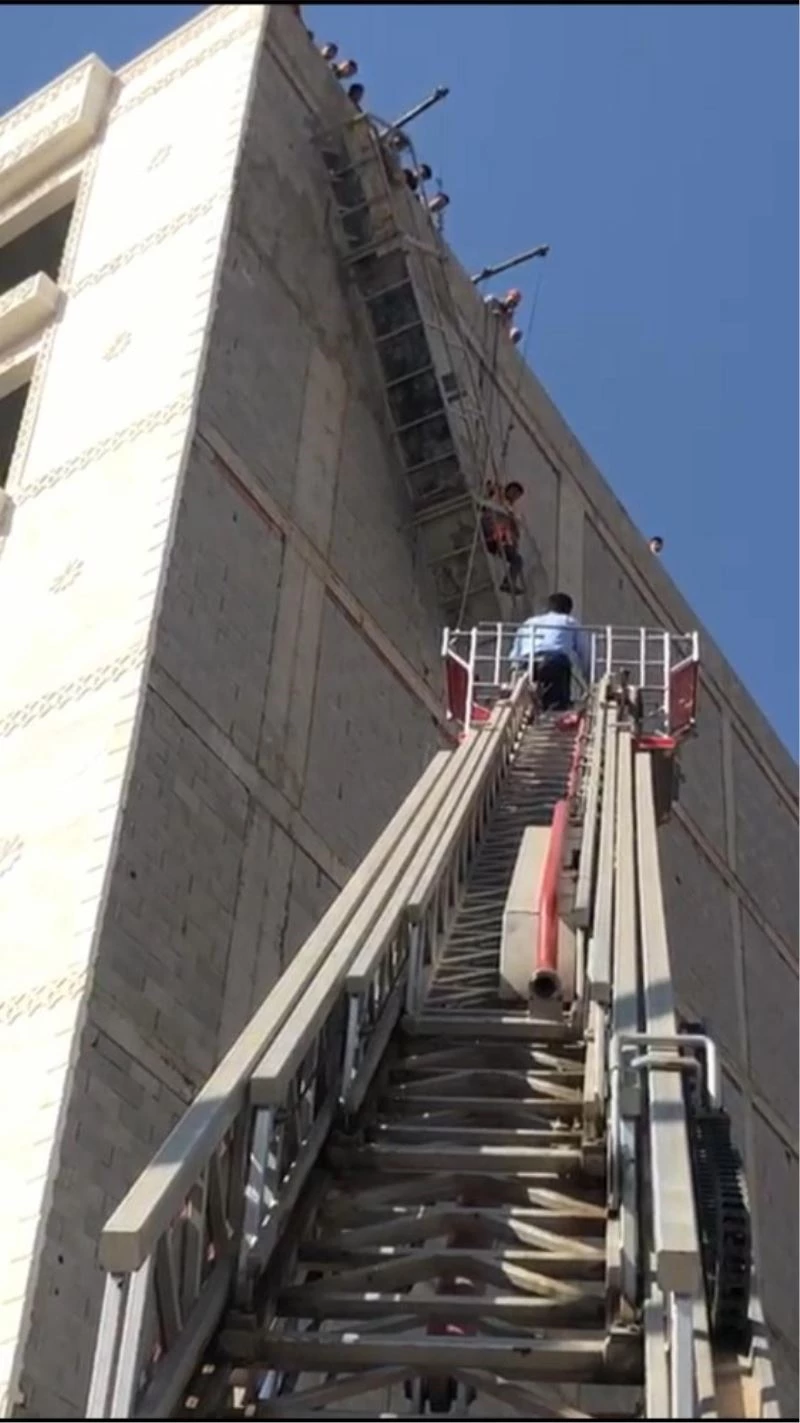 Cizre’de İdil Caddesindeki bir binanın dış cephesinde motorlu iskele üzerinde çalışan Bahattin Ocal, iskele halatının kopması sonucu mahsur 6’ncı katta mahsur kaldı. İnşaatın 6 katında havada mahsur kalan çalışma arkadaşlarını kurtaramaya çalışan diğer işçilerin çabası sonuç vermeyince itfaiye ekiplerine haber verildi. İhbar üzerine olay yerine itfaiye, sağlık ve polis ekipleri sevk edildi. İşçinin mahsur kaldığı yere gelen itfaiye erleri, Ocal’ı kurtarmak için çalışma başlattı. Mahsur kalan işçi, itfaiye merdiveni ile kurtarılarak güvenli bir şekilde aşağı indirildi.