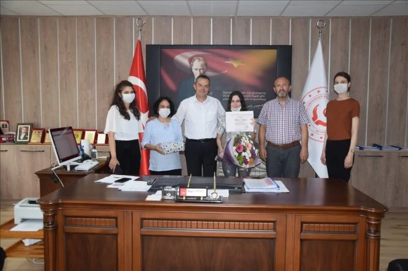 Başarılı öğrenci Özlem Ç. 26 Haziran 2020 tarihinde “Başarısına destek olduğunu belirtiği”; İl Müdürü Bilgin Özbaş’ı ve Koruyucu Aile Biriminde görevli meslek elemanlarını ailesi ile birlikte ziyaret etti.