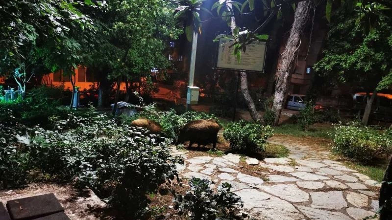 Marmaris’te özellikle pandemi döneminde sokağa hatta şehir merkezine kadar inen domuzlar bu kez çocuk parkına geldi. Sarıana bölgesinde bir çocuk parkında akşam saatlerinde yaban domuzları parka gelerek yiyecek aradı. Parkta oynayan çocuklar yanlarında getirdikleri yiyecekleri domuzlar ile paylaştı. Domuzlardan korkmayan çocuklar ‘’Onlar her akşam geliyorlar biz korkmuyoruz ‘’ diyerek kendi aralarında sohbetlerine ve oyunlarına devam etti. Çocukların yerlere döktüğü çerezleri yiyen domuzlar ise bir süre sonra bölgeden ayrıldı.