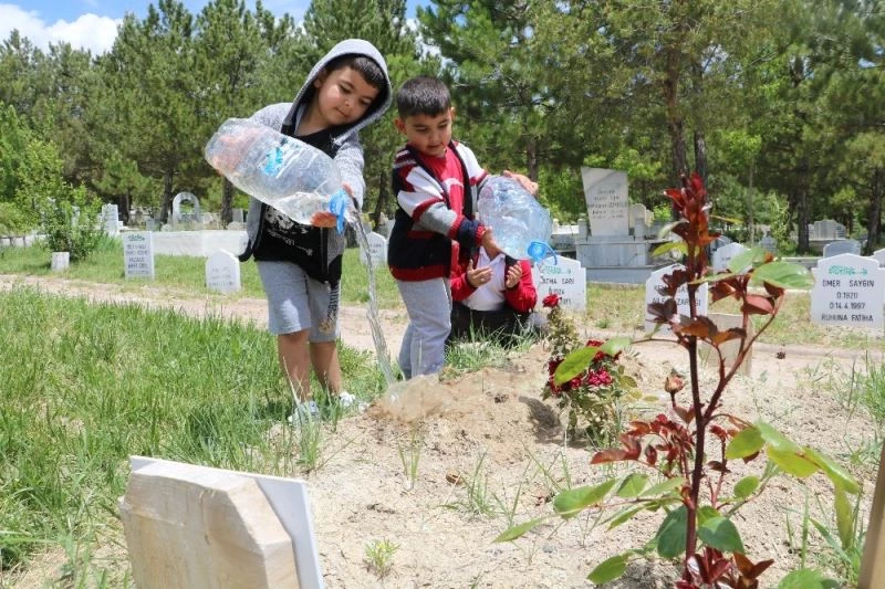 Çocuklar yarım günlük izinlerini mezarlıkta geçirdi