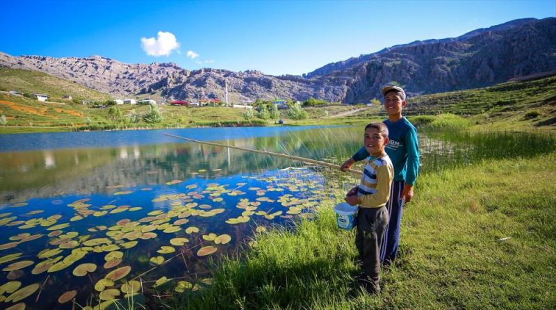 Kamistan yaptiklari oltalarla balik avlayanlardan Hasan Hüseyin Külahli, AA muhabirine, her yil yaz aylarinda gölün yakinina çiktiklarini söyledi.