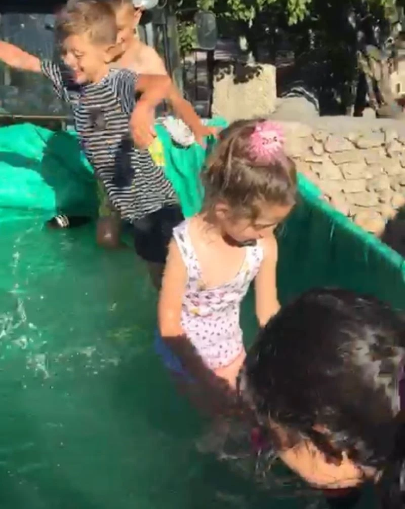 Çocuklar uzun süre havuz römorkta serinleyerek gönüllerince eğlendi.