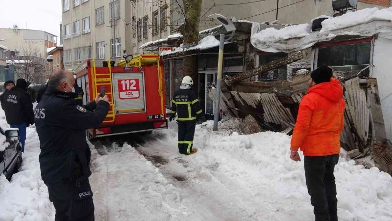 Adıyaman’da, kardan dolayı çöken bir işletmeye ait çatının altında kalan çocuk yaralandı. Kaldırımda yürüyen bir genç ise, saniye farkla çöken çatının altında kalmaktan son anda kurtuldu.