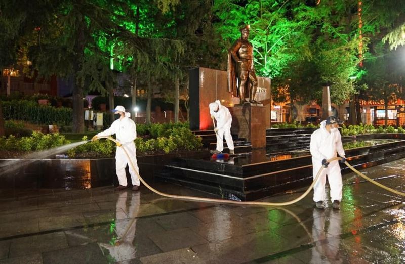 Çorlu Belediye Başkan Yardımcısı Güner Çetin’in de bizzat yerinde takip ettiği çalışmalar kapsamında Çorlu Belediyesi Temizlik İşleri Müdürlüğü ekipleri Atatürk Meydanı’ndan başlayarak altyapı çalışmaları ile asfaltlama işlemi önceki gün tamamlanan Kumyol Caddesi’ni dezenfekte etti.