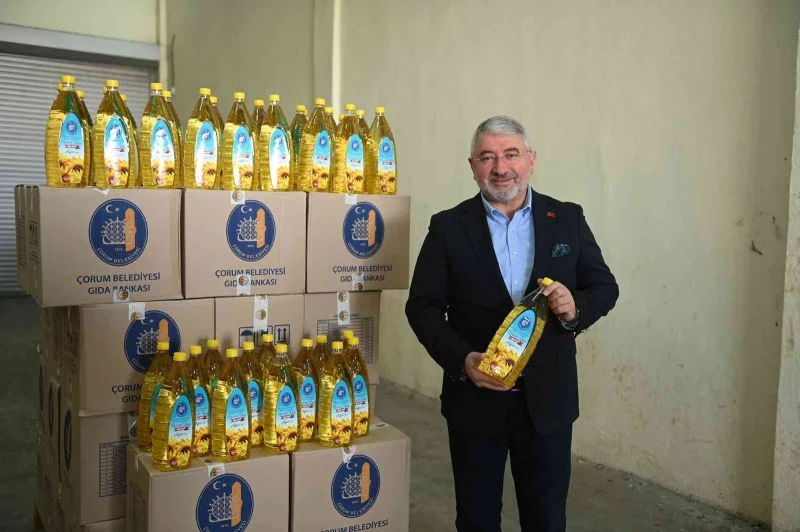 Çorum Belediyesi, 80 dönüm atıl araziye ektiği ayçiçeğinden elde edilen yağları ihtiyaç sahiplerine dağıtıyor. 4 bin litre yağ belediye tarafından belirlenen ailelere ücretsiz olarak dağıtılmaya başlandı.