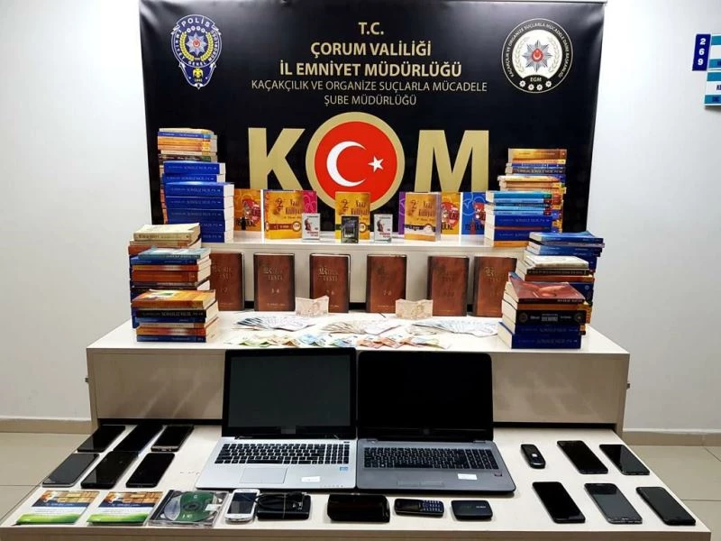 Çorum Emniyet Müdürlüğü Kaçakçılık ve Organize Suçlarla Mücadele Şube Müdürlüğü ekipleri tarafından yapılan fiziki ve teknik çalışmalar sonucunda terör örgütünden kopmaları önlemek ve örgüt üyeleri arasındaki sadakati artırmak amacıyla banka ve kargo şubeleri üzerinden kartsız şekilde örgüt üyelerine terör finansmanı sağlandığı, örgüt üyeleriyle toplantılar düzenlendiği tespit edildi. Sabah saat 06.00’da 10 şüpheli şahıs ve şahıslara ait 14 ikamet ve işyerine yönelik yapılan eş zamanlı operasyon sonucunda; şüphelilerin üzerinde, ikamet ve işyerlerinde yapılan adli aramalarda 16 adet cep telefonu, 3 adet Hard Disk(HD), 16 adet sim kart, 2 Bin 235 Türk Lirası, 275 Euro ile 148 adet örgütsel dijital döküman ele geçirildi.