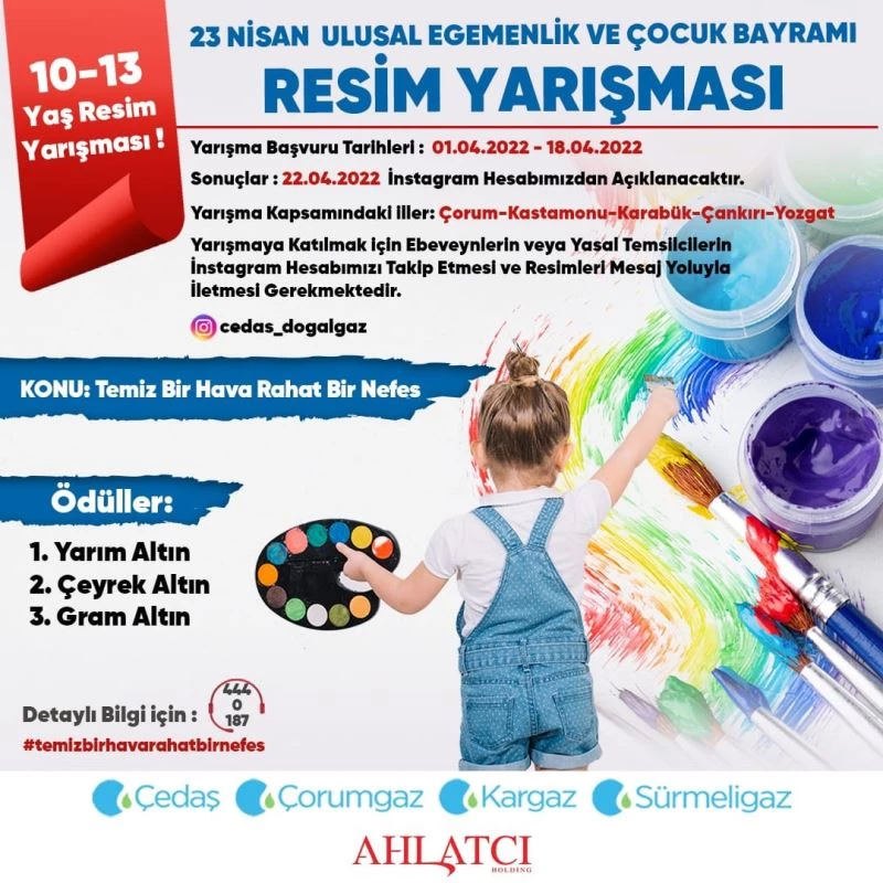 Doğalgazın hayatımıza olumlu etkileri konusunda farkındalık oluşturmak amacıyla düzenlen resim yarışmasına Çorum, Kastamonu, Karabük, Yozgat, Çankırı illeri, ilçeleri ve beldelerindeki 10-13 yaş ve aralığındaki çocuklar katılabilecekler.