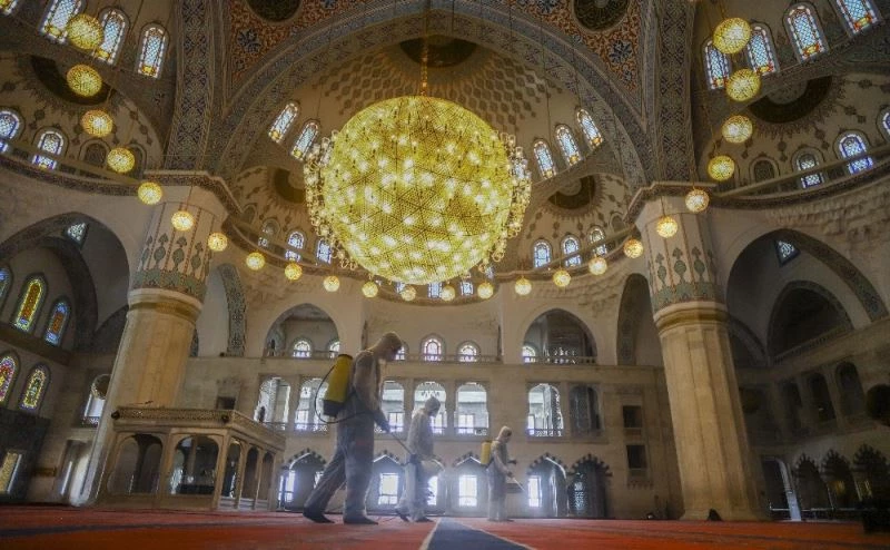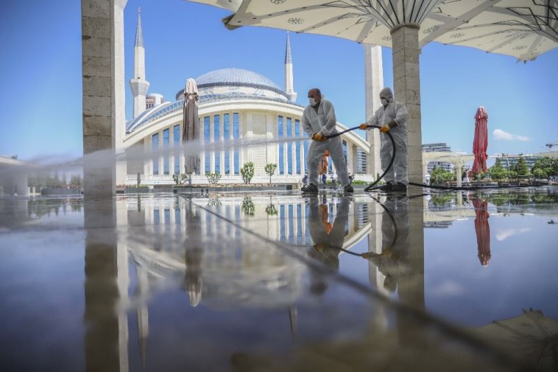 Korona virüs tedbirleri kapsamında bir süredir ibadete kapalı olan camiler, 29 Mayıs Cuma günü cuma namazı ile birlikte yeniden ibadete açılacak. Namaz cemaatle birlikte sosyal mesafe kurallarına uyarak cami avlusunda ve belirlenen spor salonu, pazar yeri gibi alanda açık havada kılınacak. Ankara’da bulunan camilerde cemaatin temas edeceği alanlarda detaylı temizlik işlemleri yapıldı. Başkent’in simgesi camileri temizleyen Büyükşehir Belediyesi ekipleri, cami avlularını yıkayarak dezenfekte etti. Cemaatle kılınacak namaz öncesi tüm tedbirler alındı, cami girişlerine dezenfektanlar yerleştirildi. Camilerde tedbir amaçlı tespih, rahle gibi ortak malzeme kullanımına da izin verilmezken, saf düzeni sosyal mesafe kurallarına göre belirlenecek. Dezenfektesi mümkün olmayan malzemeler üzerinde namaz kılınmasına da izin verilmeyecek. Vatandaşlar tek kullanımlık seccade ile namazlarını kılacak. Öğle, ikindi ve cuma namazları cemaatle kılınabilirken, diğer vakitlerde bireysel ibadetler yapılabilecek.