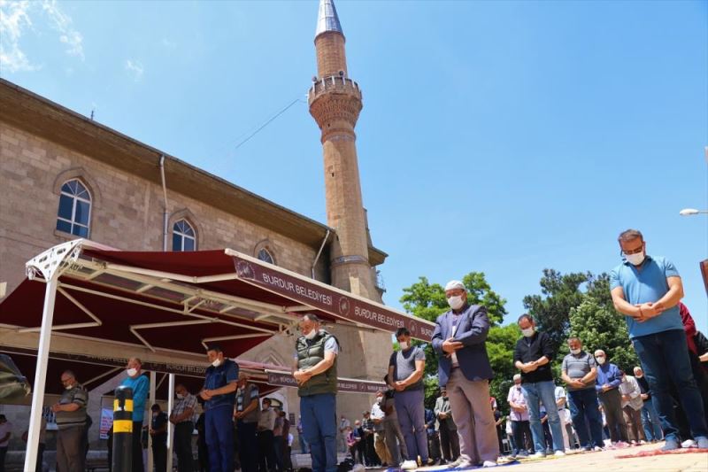 Burdur'da merkez, ilçe ve köylerde önceden duyurulan açik alan ve camilerin bahçesinde maske ve sosyal mesafe kuralina uygun olarak cuma namazi kilindi.