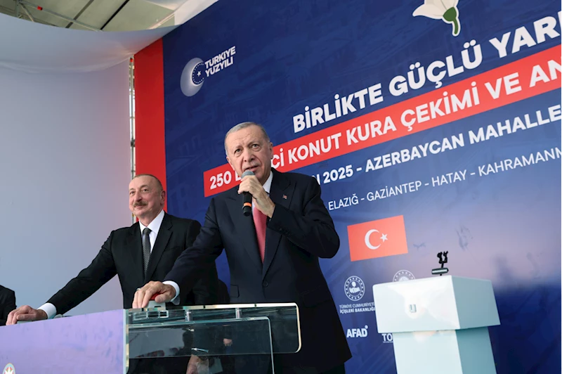 Cumhurbaşkanı Erdoğan, Azerbaycan Cumhurbaşkanı İlham Aliyev ile Kahramanmaraş'taki Azerbaycan Mahallesi'nde 250 Bininci Afet Konutu Anahtar Teslimi ve Kura Çekim Töreni'ne katıldı.